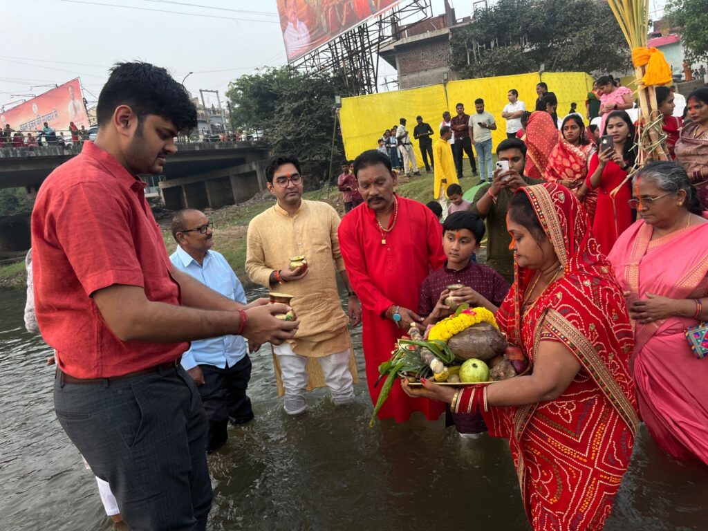 व्रतियों ने सूर्य को दिया पहला अर्घ्य, विश्व के आरोग्यता, सुख और समृद्धि की कामना