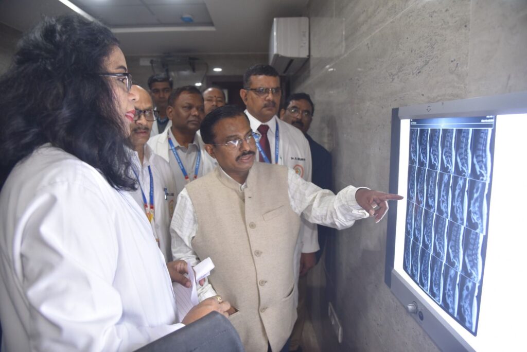 सिम्स के डीन डॉ. रमणेश मूर्ति, चिकित्सा अधीक्षक डॉ. लखन सिंह, डॉ. भूपेन्द्र कश्यप नोडल अधिकारी सिम्स एवं प्राध्यापक एवं विभागाध्यक्ष डॉ. अर्चना सिंह ने उन्हें चिकित्सालय का भ्रमण कराया। रेडियोलॉजी विभाग में एक्स-रे, सीटी स्केन, सोनोग्राफी मशीनों एवं एम.आर.आई. इत्यादि के संपादन व रिपोर्ट प्रदाय किये जाने की जानकारी ली एवं वहां उपस्थित मरीजों से भी उपलब्ध सुविधाओं के बारे में भी चर्चा की गई। मरीजों ने भी उपलब्ध सुविधाओं को संतोषजनक बताया। डॉ. अर्चना सिंह ने रेडियोलॉजी विभाग में प्रतिदिन यू.एस. जी. जांच 35-40, एक्सरे 210, सी.टी. स्केन 35-40 तथा एम.आर.आई. 10-12 जांच होना बताया।