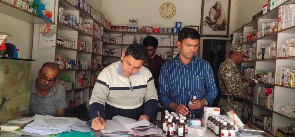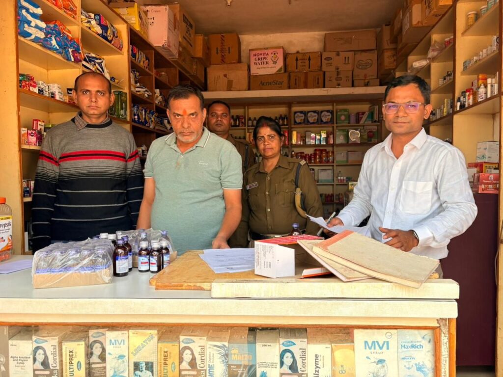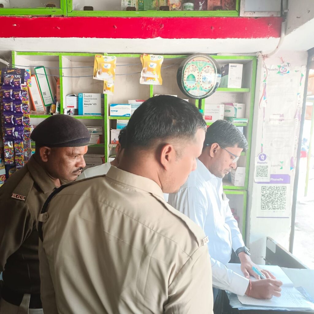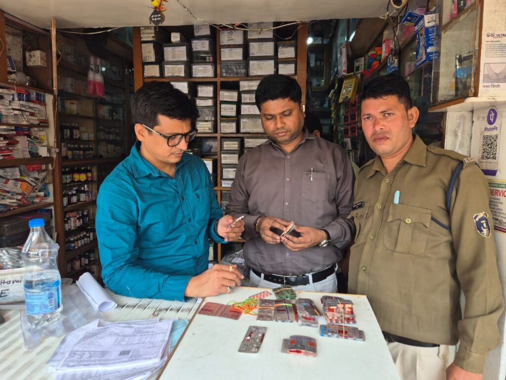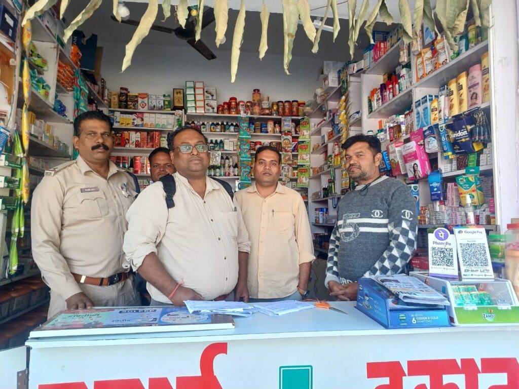 छापामार कार्यवाही में टेस्ट परचेस किया गया मंगला स्थित जेके मेडिकल स्टोर में बिना प्रिस्क्रिप्शन के नारकोटिक्स दवाओं का विक्रय पाया गया जिसमें विभाग द्वारा कानूनी कार्यवाही की जा रही है तथा 15 दुकानों मां गायत्री मेडिकल महाराणा प्रताप चौक जोया मेडिकल सीएमडी चौक आनंद मेडिकल स्टोर बस स्टैंड प्रतीक मेडिकल स्टोर चिंग राज पारा श्री राम मेडिकल स्टोर अशोक नगर सारिका मेडिकल स्टोर मोपका मां मेडिसिन कॉर्नर लिंगिया डीह शुक्ला मेडिकल चिंग राज पारा महागौरी मेडिकल जैन मेडिकल ओम शिव मेडिकल शिव ओम मेडिकल पराग मेडिकल चंद्रा मेडिकोज अनिल मेडिकल जरहा भाटा में नारकोटिक्स दवाएं बरामद किया गया जिनका क्रय विक्रय अभिलेख फर्म द्वारा मौके पर प्रस्तुत नहीं किया जा सका एवं इन मेडिकल स्टोर्स के विरुद्ध औषधि से संबंधित प्रचलित कानून के अंतर्गत कार्यवाही की जा रही है अन्य दुकानों में औषधि नियमावली की अनियमितता पाई गई जिन्हें स्पष्टीकरण प्रस्तुत करने हेतु नोटिस दिया जाएगा संतोषप्रद जवाब नहीं पाए जाने पर विभाग द्वारा औषधि नियमा अनुसार कार्यवाही की जावेगी,