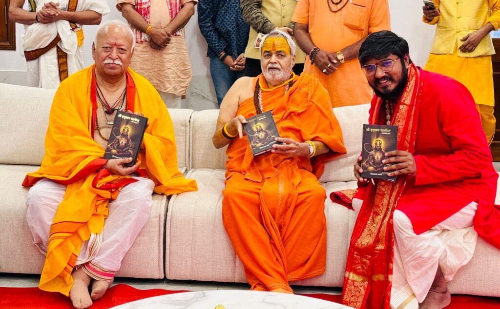 महादेव की कृपा से विनायक शर्मा द्वारा लिखित श्री हनुमान चालीसा “शाश्वत् ज्ञान” ग्रंथ का विमोचन आज राष्ट्रीय स्वयंसेवक संघ के सरसंघचालक श्री मोहन भागवत जी ने किया, साथ ही सद्गुरू महामण्डलेश्वर श्री विद्यानन्द सरस्वती जी महाराज का सानिध्य प्राप्त हुआ। श्री मोहन भागवत जी ने ग्रंथ की सराहना करते हुए विनायक शर्मा को कहा कि यह ग्रंथ राष्ट्र निर्माण एवं आध्यात्मिक उत्थान का पात्र बनेगा तथा यह ग्रंथ युवा पीढ़ी से लेकर सभी वर्गों में आध्यात्मिक चेतना को भी जागृत करेगा।