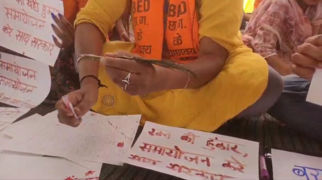 Uncategorized B.Ed बर्खास्त शिक्षकों का बड़ा प्रदर्शन आज खून से लिखी चिट्ठी मुख्यमंत्री विष्णु देव साय के नाम infowecare3@gmail.com March 20, 2025 रायपुर अरविंद मिश्रा शिव तिवारी रायपुर,बी.एड बर्खास्त शिक्षकों का बड़ा प्रदर्शन आज खून से लिखी चिट्ठी, मुख्यमंत्री साय के नाम खून से लिखा पत्र, लगातार सरकार से समायोजन की कर रहे मांग पिछले 98 दिनों से कर रहे धरना प्रदर्शन Continue Reading Previous: नक्सली एनकाउंटर को लेकर केंद्रीय गृह मंत्री अमित शाह का x पर पोस्टNext: बीजापुर मुठभेड़ में अब तक कुल 26 नक्सलियों के शव बरामद और कांकेर में 4 नक्सलियों के शव बरामद हुए है जवानों की बड़ी सफलता Leave a Reply Cancel replyYour email address will not be published. Required fields are marked *Comment * Name * Email * Website Save my name, email, and website in this browser for the next time I comment. Related Stories Uncategorized छेरछेरा पुन्नी मेला श्रद्धा और उल्लास के साथ मनाया जाएगा तैयारी पूर्ण infowecare3@gmail.com January 1, 2026 Uncategorized पत्रकार कॉलोनी में शिव महापुराण का शुभारंभ infowecare3@gmail.com January 1, 2026 Uncategorized नवनिर्वाचित कार्यकारिणी ने किया निर्माणाधीन प्रेस क्लब भवन का निरीक्षण infowecare3@gmail.com December 30, 2025