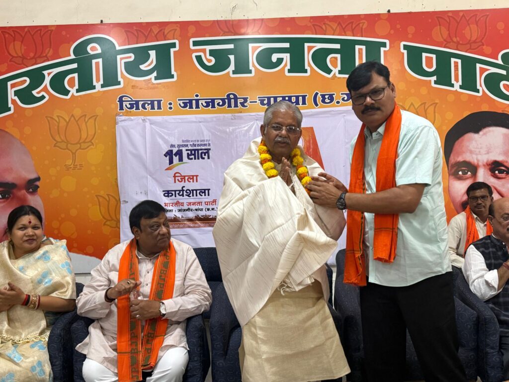 आज जांजगीर चम्पा जिला भारतीय जनता पार्टी के कार्यालय में मोदी सरकार के ऐतिहासिक कार्यकाल के 11 वर्ष पूर्ण होने के उपलक्ष्य में ‘संकल्प से सिद्धि’ अभियान कार्यक्रम में भाजपा ज़िला पदाधिकारियों की कार्यशाला लिया