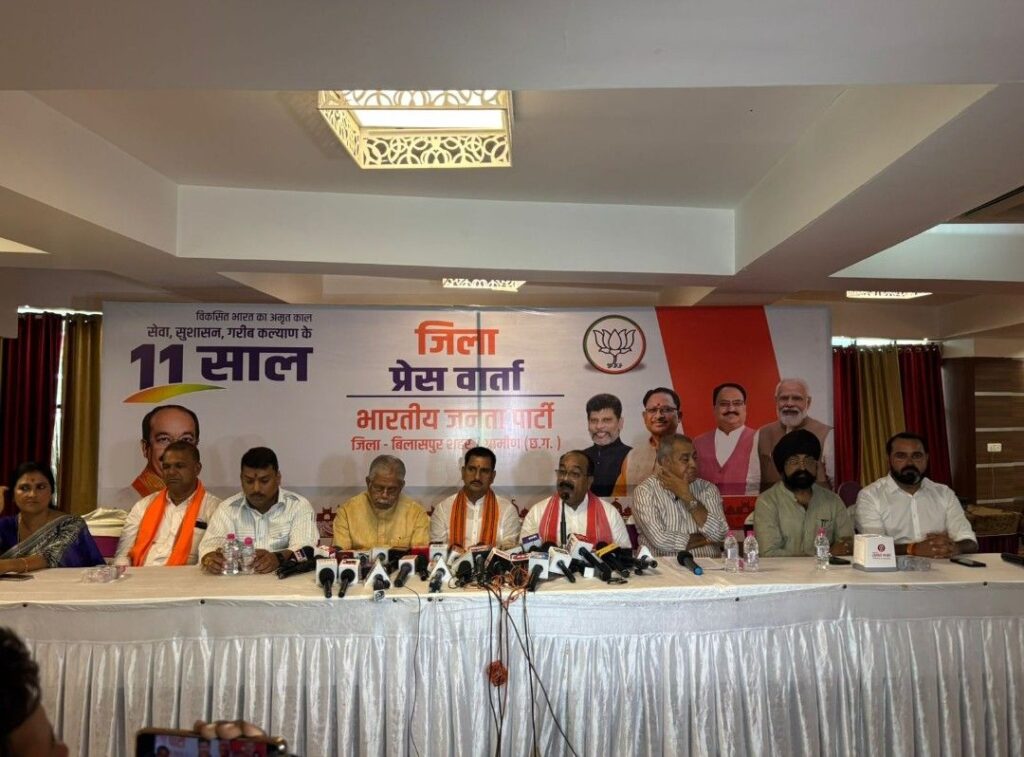 प्रधानमंत्री नरेंद्र मोदी के नेतृत्व में नेतृत्व में सेवा, सुशासन, गरीब कल्याण के गौरवशाली ग्यारह वर्ष पूरा करने के उपलक्ष्य में आज जिला भारतीय जनता पार्टी बिलासपुर द्वारा आयोजित एक प्रेस वार्ता को छत्तीसगढ़ शासन में उपमुख्यमंत्री श्री अरुण शाव जी ने संबोधित किया उन्होंने पत्रकारों को संबोधित करते हुए कहा कि प्रधानमंत्री नरेंद्र मोदी जी के नेतृत्व में भारत ने विकसित भारत के अमृत काल में सेवा सुशासन और गरीब कल्याण की नई यात्रा तय की है मोदी सरकार की हर योजना के केंद्र में जनकल्याण और आम नागरिक जीवन को आसान करने के साथ ही साथ देश को वैश्विक स्तर पर नए आयाम देने की भावना रही है बीते 11 वर्षों में प्रधानमंत्री मोदी जी के नेतृत्व में मोदी सरकार ने सीमा सुरक्षित की अर्थव्यवस्था मजबूत की और टेक्नोलॉजी को जन जन तक पहुंचा श्री साव ने केन्द्र सरकार की उपलब्धियों पर चर्चा करते हुए बताया कि भारत ने ऑपरेशन सिंदूर के जरिए पाकिस्तान के आतंकी ठिकानों और एयरबेस को ध्वस्त कर यह दिखा दिया कि अब मोदी का यह नया भारत शांति की बातें नहीं बल्कि घर में घुसकर आतंक का सफाया करता है प्रधानमंत्री मोदी ने पाकिस्तान को स्पष्ट और सख्त संदेश भी दिया कि आतंक पानी और व्यापार एक साथ नहीं चल सकती खून और पानी एक साथ नहीं बह सकता पूरे विश्व को उन्होंने स्पष्ट कर दिया कि भारतीय धरती पर किसी भी हमले को युद्ध की कार्यवाही माना जाएगा नए भारत में उभरता हुआ भारत आज स्वदेशी तकनीक के साथ अब न केवल आत्मनिर्भर रक्षा शक्ति के रूप में उभर रहा है बल्कि रक्षा उपकरणों का निर्यात भी कर रहा है एस-400 मिसाइल डिफेंस सिस्टम ब्रह्मोस आकाश मिसाइल आईएनएस विक्रांत तेजस और प्रचंड अटैक हेलीकॉप्टर जैसी स्वदेशी तकनीक इसके ज्वलंत उदाहरण हैं आज भारत का रक्षा निर्यात 34 गुना बढ़कर 23622 करोड़ तक पहुंच गया यह प्रधानमंत्री जी के रणनीतिक दूरदर्शिता और कूटनीतिक तैयारी का नतीजा है एक समय था जब देश के 96 जिले नक्सलवाद की चपेट में थे लेकिन प्रधानमंत्री जी की निर्णायक नीति सुरक्षा बलों की सशक्त करवाई और विकास की डबल रणनीति के कारण अब नक्सल प्रभावित जिले घटकर गिनती के रह गए हैं नक्सली घटनाओं में 70% की कमी आई है आज भारत विश्व की चौथी बड़ी अर्थव्यवस्था बनने की ओर अग्रसर है वैश्विक डिजिटल लेनदेन के 49 प्रतिशत लेनदेन भारत में होते हैं देश का वास्तु और सेवन निर्यात 825 अरब डालर तक पहुंच गया है सरकार के ई बाजार जाम पोर्टल से खरीदी में भ्रष्टाचार पूरी तरह से समाप्त हो चुका है इस प्रणाली पर मार्च 2025 तक 13.41 लाख करोड़ से अधिक के 2.83 करोड़ आर्डर दिए गए हैं मोदी सरकार ने डायरेक्ट बेनिफिट ट्रांसफर की शुरुआत कर 44 लाख करोड रुपए सीधे लाभार्थी के खाते में पहुंचना शुरू कर दिया 