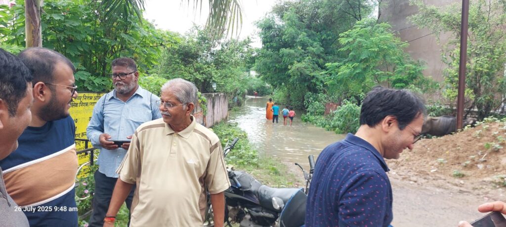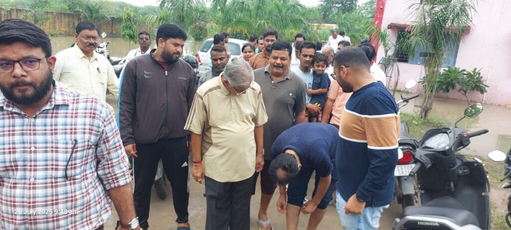 विगत दो दिनों से लगातार हो रहे बारिश से कई क्षेत्रों में जल भराव की समस्या को ध्यान में रखते हुए सुबह घर से निकले माननीय धरमलाल कौशिक जी नगर निगम बिलासपुर के वार्ड नंबर 10 सिरगिट्टी में निचली बस्ती में जल भराव के कारण हो रहे समस्या की जानकारी जैसे ही श्री धरमलाल कौशिक जी को हुआ उन्होंने तत्काल अधिकारियों से बात कर मौका मुआयना किया साथ ही जरूरी दिशा निर्देश देते हुए पानी निकासी, खाद्यान्न सामग्री संबंधित एवं आवश्यक चिकित्सा संबंधित, चर्चा करके संबंधित विभाग के अधिकारियों से ध्यान देने कहा ।साथ ही हाईस्कूल के लिए अतिरिक्त मार्ग के लिए भी बात किये व सिरगिट्टी अंडरब्रिज को रेल्वे के द्वारा बंद किये जाने पर भी संबंधित विभाग से बात करने की बात कही गई। इस अवसर पर बिलासपुर कलेक्टर श्री संजय अग्रवाल नगर निगम आयुक्त अमित कुमार तहसीलदार,जोन कमिश्नर, शिक्षा अधिकारी,विभिन्न विभाग के अधिकारी सहित स्थानीय जनप्रतिनिधि उपस्थित रहे।