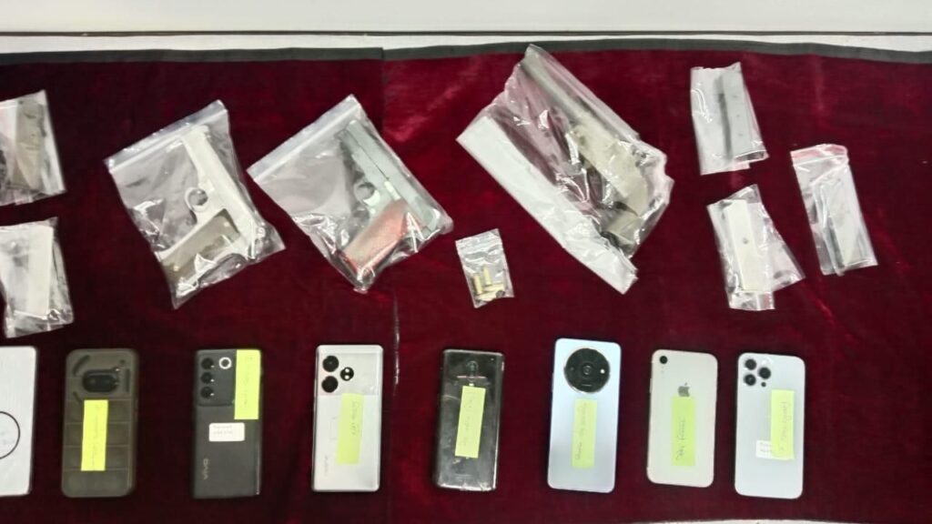 आरोपियों से बरामद हथियार और मोबाइल
